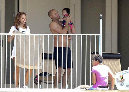 Melanie “Mel B” Brown spends some time by the water with her family. Her husband Stephen Belefonte takes her daughter Angel,4, for a kayak ride while Brown opts to stay dry with daughters Phoenix,12, baby Madison, 5 months, and their nanny.