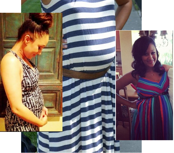 It’s not uncommon for women to choose the maxi dress as a preference for their daily activities. Maxi dresses are known to be comfortable and always in-trend, something Tamera has caught onto and finessed throughout her pregnancy. Great styles and colors can be found everywhere. Tamera’s multi-colored maxi dress (far right above) is made by Motherhood Maternity for $30. Another cool brand with great affordable casual maxi and/or maternity dresses is The Gap. They have a sleeveless version of what Tamera is wearing above (center) for only $23. And, if you prefer patterns you can find a similar look to Tamera’s (far left image) at Bloomingdale’s made by Calvin Klein for $40.