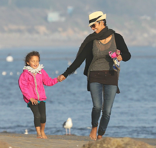 Halle and Nahla lavished in the California sunshine over the weekend. The mother-daughter duo was spotted among the sand and waves at the beach in Malibu looking happy as ever. Halle helped Nahla find sea treasure as Nahla scooped up the goods in her bucket. Nahla rocked in her stylish sunglasses and jacket that were both pink.
