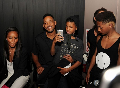 The Smith family are all for one and one for all. Jada, Will, Jaden,14, and Willow,12, recently came out to support Trey in his DJ endeavors at a nightclub in Miami, Florida. The eldest son of Will Smith rocked the house as step-mom and dad looked on with delight. Willow and Jaden also looked pleased to be in the house supporting big brother, and brought their sense of fashion to the party. Jaden showed his blond and black hairstyle to the crowd while Willow sported a grey t-shirt and black skinny jeans that screamed rock star.