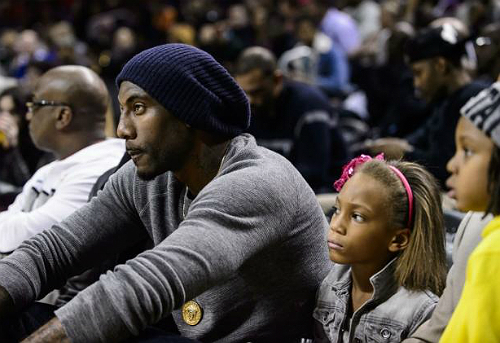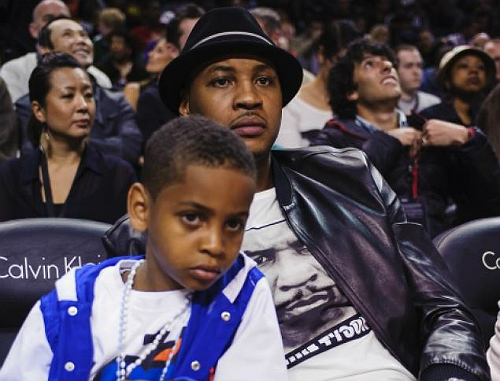 NBA star Carmelo Anthony and son Kiyan watched intently as the Jordan Brand Classic all star game unfolded before their eyes over the weekend. The New York ‘Knicks’ player and his son studied the moves that took place on the court as they joined the crowd in cheering on the high school stars. Amar’e Stoudemire also attended the game with his and wife Alexis’ kids.