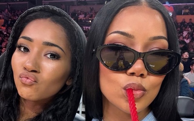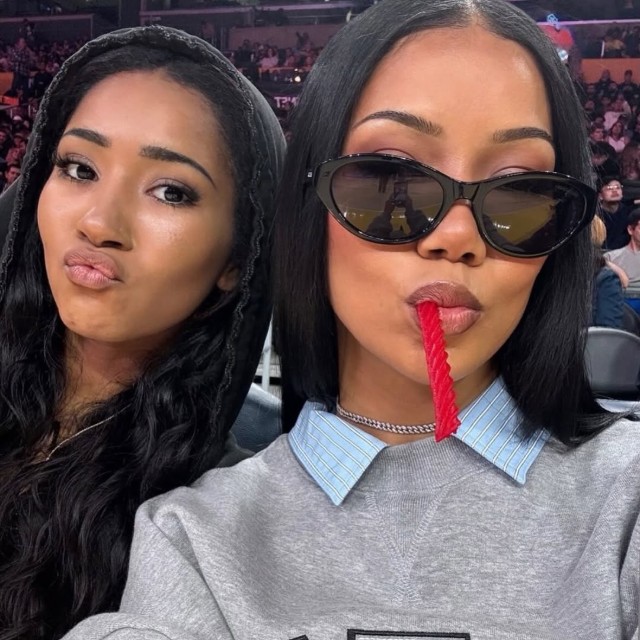 After the game, Jhené shared a few glimpses from the night on her Instagram Story, including a photo with Namiko which she captioned, “Me and lil twin locked in.”