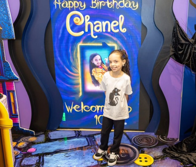 The Coraline love continued beyond the first day of school. The family even dressed as characters from the film for Chanel’s school Halloween party, making the birthday celebration feel like the latest chapter in a theme that Chanel has been building all year.