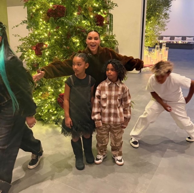 In the candid photos, some of the kids look away from the camera while others are mid-move or only partially in frame, capturing the all-too-familiar challenge parents know well. One of the final slides even shows Kim dancing with North in a fun selfie-video moment.