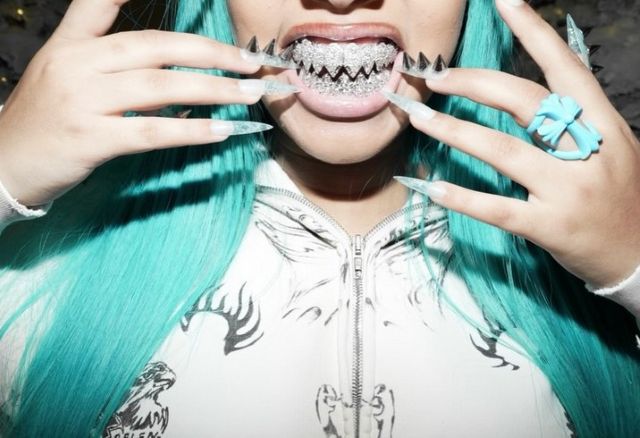 The standout detail? Her sparkling grills. North showed off pointed, diamond-like pieces covering both her top and bottom teeth, adding an extra edge to the festive photos. She kept the caption simple, writing only a single drop of water.