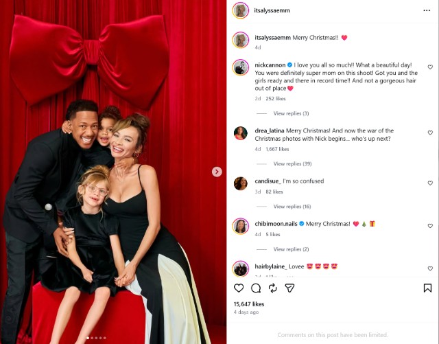 Not all of the mothers of Cannon’s children shared holiday photos with him this year. LaNisha Cole, Brittany Bell, and Mariah Carey did not post images with Cannon, though Bell and Carey each shared separate holiday moments with their kids.