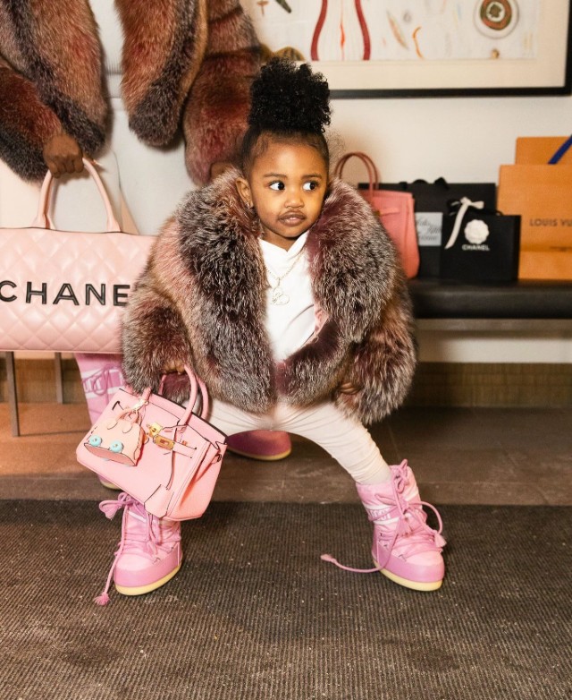 In the photos, Klarity rocked a cropped pink-and-brown Trinity fur bolero from The Fancy Success — the same brand behind her mom’s jacket. The look is part of the brand’s Mommy and Me line, created for parents and kids who love to coordinate without holding back on style.