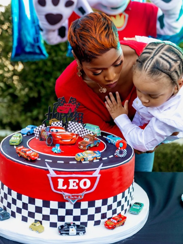 In one snapshot, she held Leo close as they blew out the candles on his racetrack-inspired cake, decorated with miniature “Cars” characters and a bold number three. Other photos captured guests in attendance, including Skai Jackson and her son, Kasai, along with Raven-Symoné.