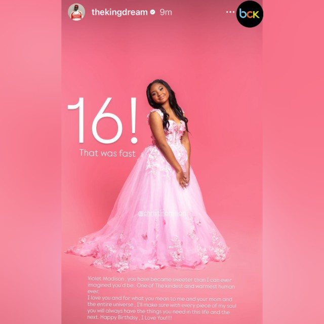The-Dream, whose real name is Terius Nash, also posted a tribute in his Instagram Stories. He shared a pink portrait of Violet from the birthday shoot followed by a message.