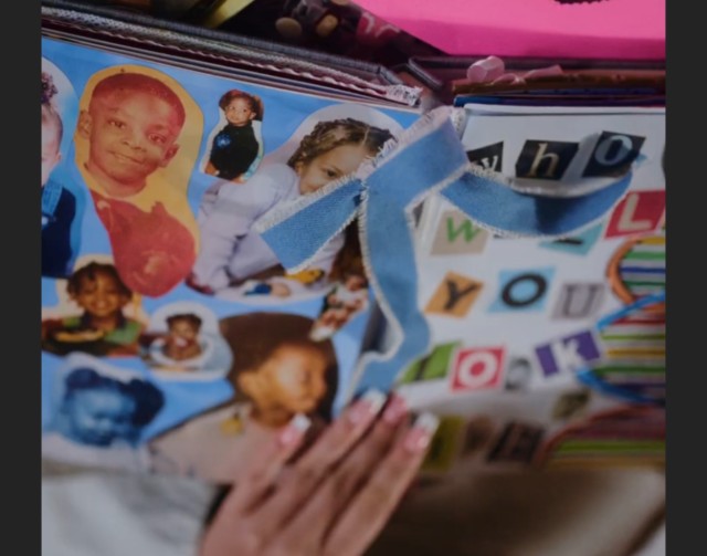 At one point in the video, Latto flips through a baby-themed scrapbook filled with cutouts, childhood photos, and a Clearblue pregnancy test. On one page, the words “Who will you look like?” appear next to baby photos of both Latto and 21 Savage.