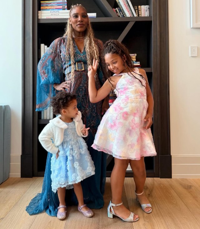 In one photo, Serena posed with her girls as they adorably flashed peace signs, while another captured a full family moment with Alexis holding their youngest.