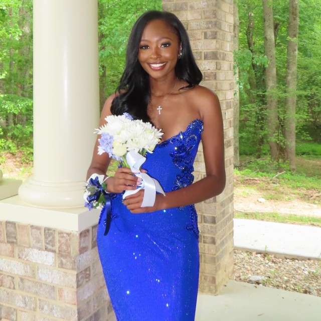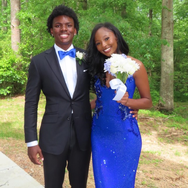 The daughter of 2 Chainz and Kesha Ward wore a fitted royal blue gown with sparkling details for the occasion. Her date matched her fly in a black suit with a royal blue bow tie.