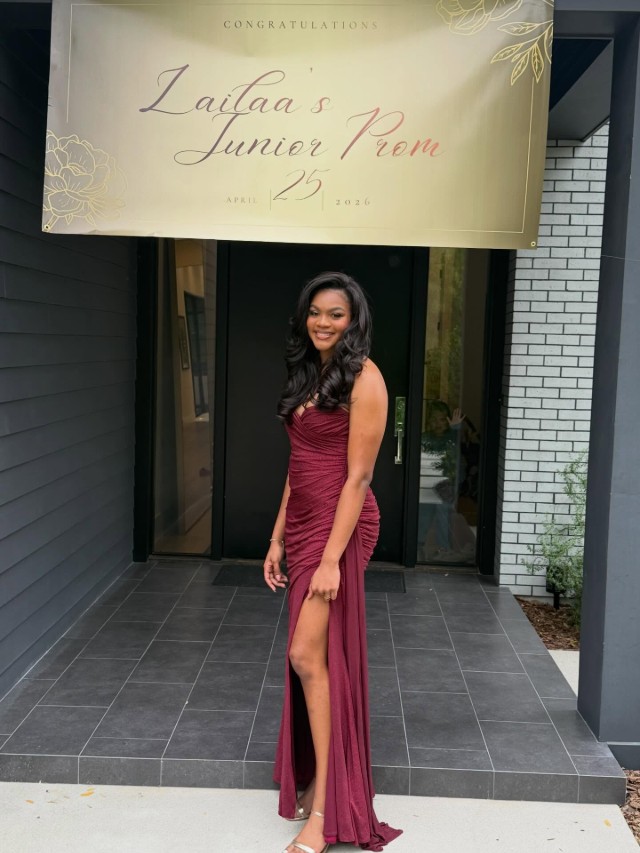 The former WNBA star shared a look at the moment on Instagram, where Lailaa was seen dressed for the night in a floor length burgundy gown.