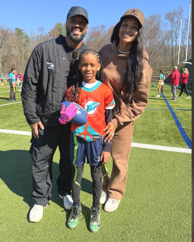 Russell took to Instagram to share a series of photos of Sienna over the years. In one snapshot, he and Ciara posed with their daughter as she got ready for a flag football game.